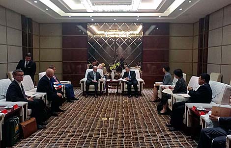 Состоялись также переговоры Кирилла Рудого и Андрея Кунцевича с вице-мэром города Тяньцзинь Цзинь Сянцзюнем. Стороны обсудили актуальные вопросы двустороннего взаимодействия. Был подписан меморандум об установлении побратимских связей между Могилевской областью и Тяньцзинем.