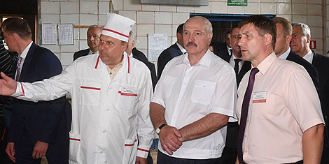 После посещения Оршанского инструментального завода, где Президент остался крайне недоволен увиденным, Александр Лукашенко посетил еще ряд предприятий города, в их числе мясоконсервный комбинат.