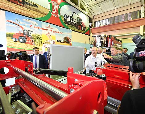 Во время посещения предприятия речь шла о его текущем состоянии и перспективах развития. Президенту продемонстрировали модельный ряд производимой техники, который за последнее десятилетие удалось значительно расширить, а также новинки и опытные образцы. Генеральный директор предприятия Александр Камко представил вниманию главы государства подробную информацию о финансово-экономических показателях "Гомсельмаша", в том числе инвестиционной программе, кредитной нагрузке, производственных планах, расширении географии экспортных поставок. Отмечено, что импортозамещающий эффект за счет производства в Беларуси собственных комбайнов в 2010-2017 годах составил более $2,2 млрд.