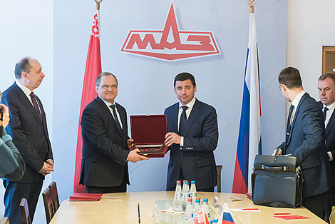 Минский автозавод посетила делегация Ярославской области во главе с губернатором Дмитрием Мироновым. "Делегация побывала на обширной выставке автотехники, завершили встречу переговоры. Ярославскую область интересуют белорусская автотехника. По прогнозам, в 2018 году продажи МАЗ в Ярославской области вырастут вдвое. Только грузовиков планируется поставить около 100 экземпляров", - говорится в сообщении.