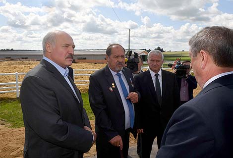 10 июля, Белыничский район /Корр. БЕЛТА/. Белыничский СПК "Колхоз "Родина" разработал систему мер для мотивации своих работников. О некоторых из них сегодня Президенту Беларуси Александру Лукашенко рассказал председатель кооператива Александр Лапотентов, передает корреспондент БЕЛТА.