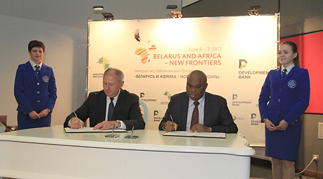 Как сообщалось, в прошлом году Афрэксимбанк и Банк развития заключили меморандум о взаимопонимании. Соглашение предусматривает совместное финансирование проектов по поставкам белорусской техники и оборудования в 41 страну Африки, включая Анголу, Кению, Зимбабве, Египет, Танзанию, Гану, Нигерию, Замбию, Тунис. Стороны договорились зарезервировать определенные лимиты средств - по $400 млн, которые будут направлены на активизацию взаимной торговли. Рамочное соглашение между ОАО "Банк развития Республики Беларусь" и Африканским экспортно-импортным банком является фактически соглашением об открытии кредитной линии на $150 млн.