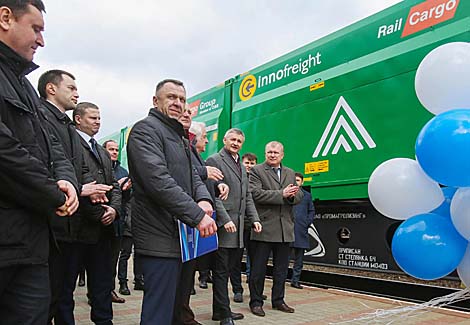 5 марта, Ганцевичи /Корр. БЕЛТА/. В Ганцевичах сегодня состоялась торжественная церемония отправки в рейс первого контейнерного поезда, который доставит в Румынию продукцию деревообработки белорусских предприятий, передает корреспондент БЕЛТА.