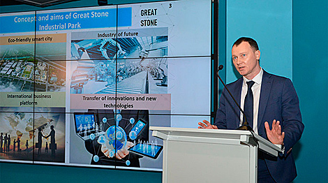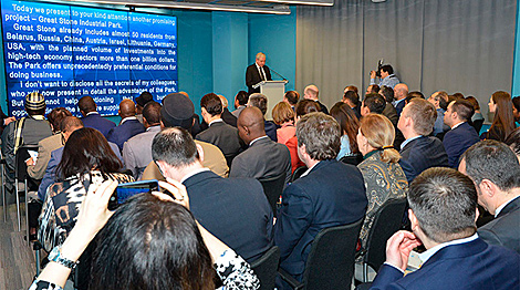 "Презентация нацелена на то, чтобы посольства, которые аккредитованы в Москве, донесли информацию до бизнес-кругов своих государств о нашей площадке, которая предоставляет наиболее эффективные условия ведения бизнеса на всем евразийском пространстве, - сказал журналистам первый заместитель главы администрации "Великого камня" Игорь Лещенок. - Познакомить с теми условиями, которые созданы в парке, чтобы наладить выпуск продукции как для европейского, так и для евразийского рынка, с учетом того, что Беларусь граничит с двумя этими рынками".