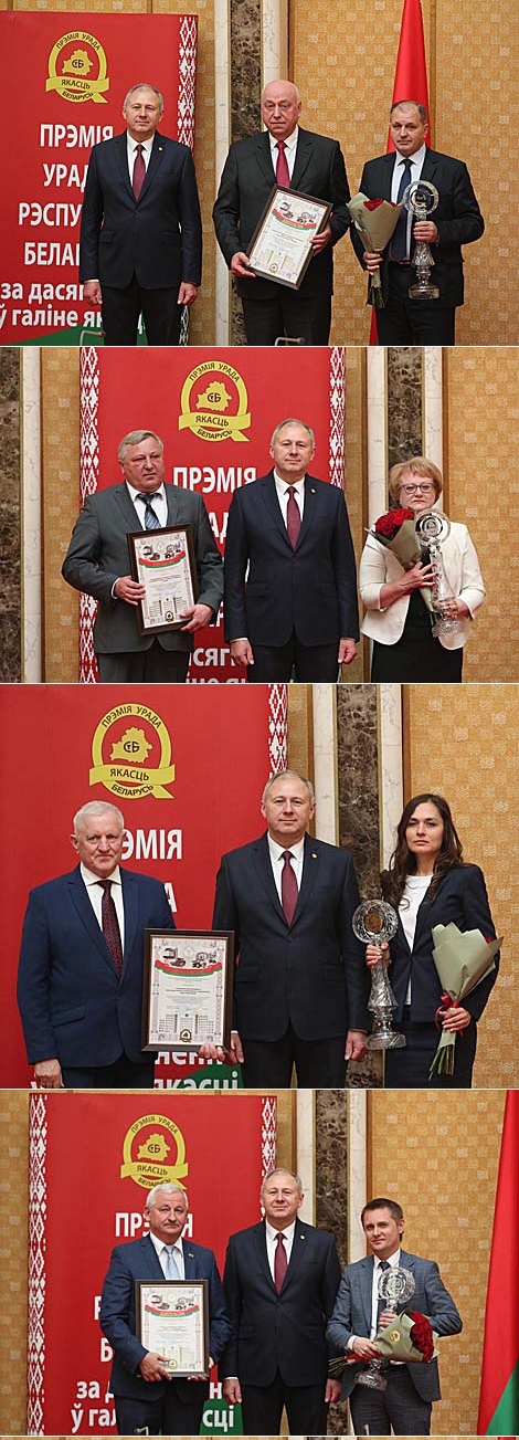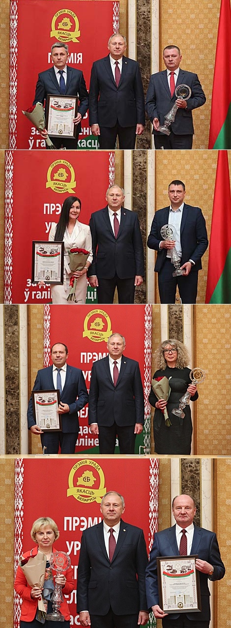 Сергей Румас поблагодарил награждаемые предприятия за системное продвижение качества во все сферах деятельности, вклад в улучшение экономической ситуации в стране. "Своим эффективным трудом, высокой социальной ответственностью вы стимулируете партнеров к самосовершенствованию, активной работе в области качества, использованию передового опыта и современных механизмов управления. Все это в свою очередь способствует стабильному развитию Беларуси, сохранению ресурсов и окружающей среды для нынешнего и будущих поколений", - сказал премьер-министр.