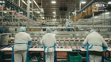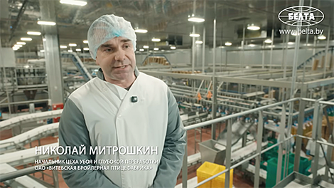 В 2022 году на птицефабрике ввели в эксплуатацию новый цех убоя и глубокой переработки птицы. Теперь, по словам работников, это самый продвинутый подобный цех в Беларуси. Все процессы автоматизированы: от поступления птицы на убой до отправки продукции на склад или в другие подразделения фабрики. "Цех работает в две смены по семь часов. Производительность - 9 тыс. голов в час. Все начинается здесь - с получения идеального сырья", - рассказал начальник цеха Николай Митрошкин.