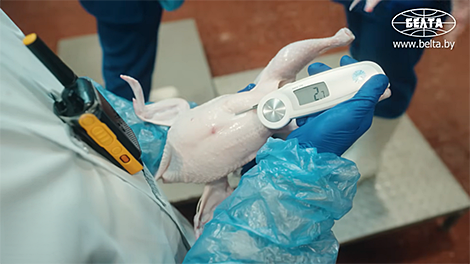 Затем тушки охлаждаются в воздушном тоннеле 165 минут и дальше подаются на разделку. Температура в любой точке измерения должна быть не более четырех градусов Цельсия. Это каждые полчаса проверяет инженер-технолог.