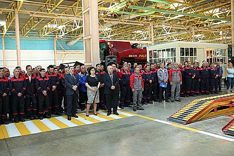 Под аплодисменты собравшихся с конвейера сошел первый зерноуборочный комбайн. После этого гости опробовали только что собранный электробус марки E-321. Было отмечено, что электробус выгоден как с точки зрения минимизации негативного воздействия на экологию, так и по показателю экономии расхода энергии. Автобусы, рассчитанные на 83 пассажира, оборудованы 26 сиденьями, кондиционером, информационным монитором и системой видеоконтроля. Время полной зарядки аккумуляторов электробуса, способного развивать скорость до 60 км/ч, на зарядной станции типа RGZP/G/300KW 600V-EN составляет всего шесть минут. В случае спроса мощности завода позволят выпускать 120 комбайнов и 150 электробусов в год.