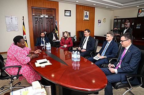 На переговорах с государственным министром по вопросам животноводства Министерства сельского хозяйства, животноводства и рыболовства Республики Уганда Брайтом Рвамирамой был обсужден ход реализации договоренностей по итогам его недавнего визита в Беларусь. Стороны условились ускорить работу над выполнением пунктов меморандума о взаимопонимании в сфере обеспечения продовольственной безопасности. В частности, договорились использовать белорусские технологии для дальнейшей механизации сельского хозяйства Уганды, в том числе для сохранения молока и получения сухого молока. Кроме того, обсуждены возможности поставок белорусского холодильного и доильного оборудования, создания совместных сборочных производств сельхозтехники на территории Уганды.