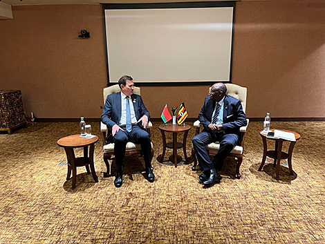 В рамках визита в Кампалу (Уганда) глава белорусского МИД провел ряд двусторонних встреч с представителями правительства Республики Уганда и коллегами из стран ДН. Встреча с вице-президентом Республики Уганда Джессикой Роуз Алупо была посвящена дальнейшей выработке дорожной карты двустороннего сотрудничества и наполнению ее конкретными задачами в области сельского хозяйства, созданию совместных предприятий на территории Уганды по производству тракторов и сельхозтехники, строительству инфраструктуры, а также связям в области легкой промышленности. Достигнута договоренность о скором визите угандийской делегации в Беларусь во главе с вице-президентом. Стороны выразили приверженность дальнейшему выстраиванию долгосрочного и стратегического взаимодействия и договорились провести в ближайшее время заседание межправительственной комиссии по торгово-экономическому сотрудничеству.