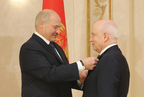 6 апреля, Минск /Владимир Матвеев - БЕЛТА/. Президент Беларуси Александр Лукашенко вручил председателю Исполнительного комитета - исполнительному секретарю СНГ Сергею Лебедеву орден Почета, передает корреспондент БЕЛТА.
