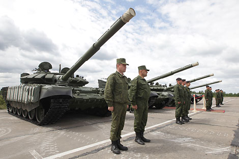 2 июня, Минск /Корр. БЕЛТА/. Новая партия модернизированных танков Т-72Б3 сегодня в торжественной обстановке передана личному составу 969-й базы резерва танков на 174-м полигоне ВВС и войск ПВО, передает корреспондент БЕЛТА.