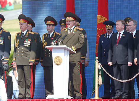 3 июля, Минск /Алина Гришкевич - БЕЛТА/. В Беларуси продолжится укрепление армии и оснащение ее самыми современными образцами вооружения и техники. Об этом заявил Президент Беларуси Александр Лукашенко, выступая 3 июля на параде в ознаменование Дня Независимости Республики Беларусь, передает корреспондент БЕЛТА.