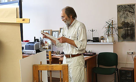 Андрей Андреевич Крапивка реставрации отдал 42 года, большую часть этих лет посвятив возрождению графики и старопечатных книг, хотя начинал профессиональную деятельность как архитектор. "В архитектуре сложно воплотить задуманное, поскольку обычно над такими проектами трудятся коллективно. Мне же хотелось, чтобы результат зависел только от меня", - пояснил мастер. В свое время он набирался опыта у вильнюсских коллег.