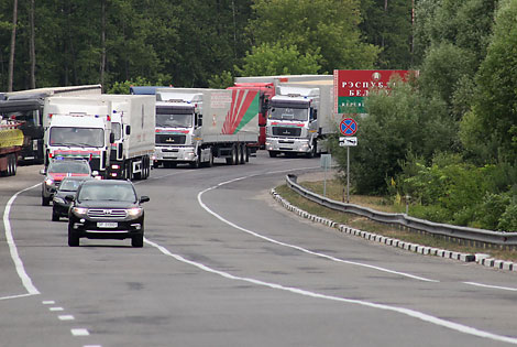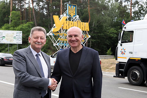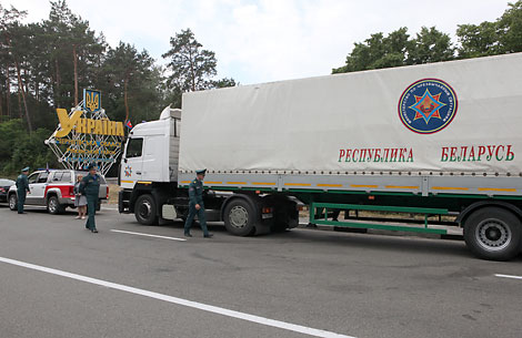 12 июня, Гомельский район /Корр. БЕЛТА/. Колонна с гуманитарным грузом для Украины утром 12 июня покинула Беларусь, передает корреспондент БЕЛТА.