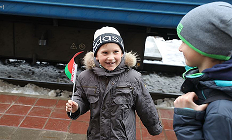 На перроне в Гомеле для гостей подготовили теплое музыкальное приветствие с танцевальным флешмобом.