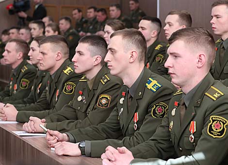 Он поздравил курсантов, слушателей и профессорско-преподавательский состав Военной академии, а также весь состав Вооруженных Сил Беларуси с наступающим праздником, выразив признательность за ратный труд, мужество и самоотверженность.