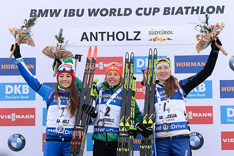 20 января, Минск /Корр. БЕЛТА/. Белорусская биатлонистка Дарья Домрачева заняла третье место в гонке преследования на этапе Кубка мира в итальянском Антхольце, сообщает корреспондент БЕЛТА.