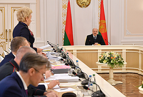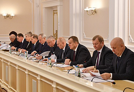 В совещании участвуют премьер-министр, глава Администрации Президента, руководители министерств и ведомств, председатели облисполкомов и руководство Банка развития.