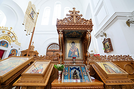 Здесь ежедневно бывают паломники со всего мира. Многие верующие стремятся сюда, чтобы поклониться святыням обители. Среди них: святые мощи основательницы монастыря Евфросинии Полоцкой и ее вериги, воссозданный крест преподобной Евфросинии Полоцкой, который был утрачен в годы Великой Отечественной войны, современная серебряная рака, воссозданная по эскизам 1910 года. Кроме того, в монастыре хранится около трехсот частиц мощей угодников Божиих.