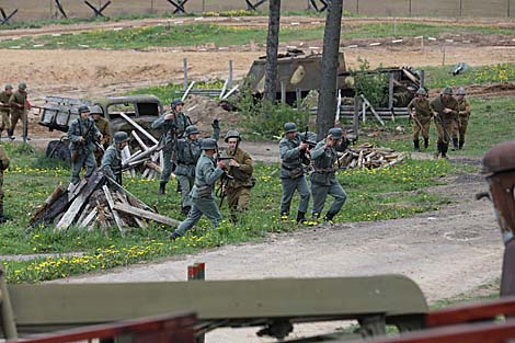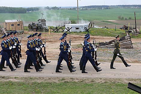 Церемония официального открытия проходит сегодня на территории историко-культурного комплекса "Линия Сталина". Будут продемонстрированы два боевых эпизода. В первом инсценируют штурм безымянной высоты во время Великой Отечественной войны. Во втором задействуют современные образцы военной техники, произведенные и принятые на вооружение в Беларуси в последние годы, - бронированные машины "Кайман", модернизированный БТР-70-БМ, а также тягач МЗКТ 500200, предназначенный для буксировки артиллерийской системы 2Б23 "Нона". Техника будет участвовать в демонстрации уничтожения бандформирования, вторгшегося на территорию Беларуси.