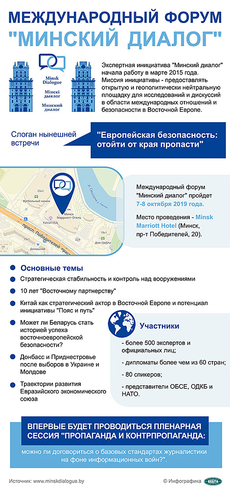 7 октября, Минск /Корр. БЕЛТА/. Форум "Минского диалога" на тему "Европейская безопасность: отойти от края пропасти" открывается сегодня в белорусской столице, сообщает БЕЛТА.