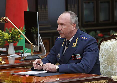 21 февраля, Минск /Владимир Матвеев - БЕЛТА/. Президент Беларуси Александр Лукашенко сегодня, принимая с докладом генерального прокурора Александра Конюка, поручил ему подключиться к подготовке совещания с силовым блоком страны, передает корреспондент БЕЛТА.