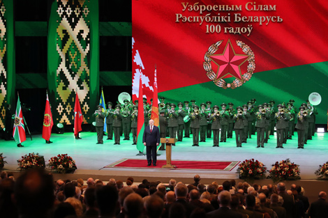 22 февраля, Минск /Михаил Матиевский - БЕЛТА/. Белорусский народ приобрел генетическое неприятие любой вооруженной агрессии. Об этом Президент Беларуси Александр Лукашенко заявил сегодня на торжественном собрании, посвященном 100-летию Вооруженных Сил Беларуси, передает корреспондент БЕЛТА.