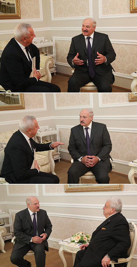 12 июля, Минск /Корр. БЕЛТА/. Президент Беларуси Александр Лукашенко на полях заседания XIX Всемирного конгресса русской прессы встретился с послом доброй воли ЮНЕСКО, президентом Всемирной ассоциации русской прессы Виталием Игнатенко и ответственным секретарем Всемирной ассоциации русской прессы, первым заместителем генерального директора информационного агентства ТАСС Михаилом Гусманом, передает корреспондент БЕЛТА.