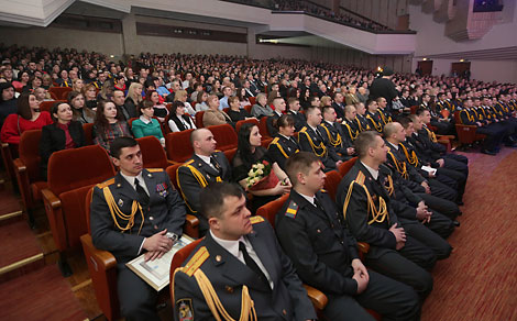 "Продолжая овеянные славой героические традиции старших поколений, сотрудники органов внутренних дел с честью и достоинством исполняют свой служебный долг. На счету у людей в милицейских погонах немало достижений, хорошей результативной работы, в которой сполна проявились мужество, профессионализм, гражданская ответственность", - говорится в поздравлении.