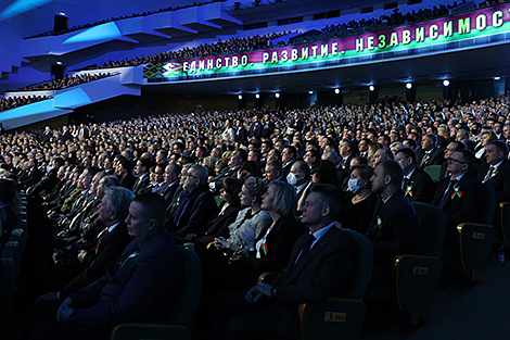 На мероприятие был приглашен широкий круг участников - более 2,5 тыс. человек. Такой широкий формат - инициатива, предложенная во время работы Президента в регионах, которую глава государства поддержал. В итоге кроме парламентариев и делегаций от областей и города Минска традиционно среди приглашенных - высшие должностные лица страны, члены правительства, руководители государственных органов, средств массовой информации, представители дипломатического корпуса и международных организаций, главы религиозных конфессий, парламентарии прошлых созывов, представители реального сектора экономики, молодежь, журналисты и блогеры.