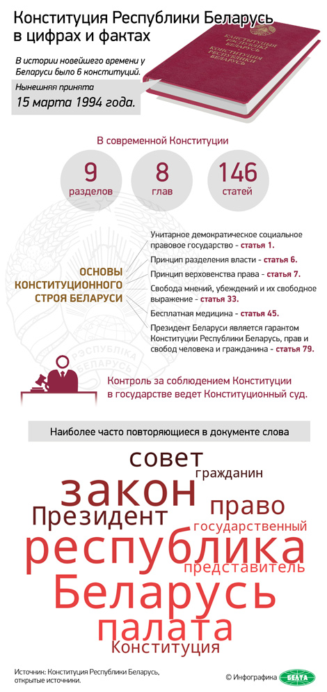 "С Основным законом, закрепившим важнейшие принципы устройства общества и государства, связана реализация таких ценностей, как законность, равенство, справедливость и народовластие. Укрепление суверенной государственности, достижение общественного согласия и социально-политической стабильности неразрывно связаны с конституционным правом белорусского народа определять свою судьбу и принимать наиболее важные решения", - говорится в поздравлении.