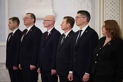 Аналогичную присягу принесли избранные судьи Конституционного Суда Павел Гридюшко, Александр Каравай, Андрей Ковальчук, Татьяна Протащик и Елена Семашко.