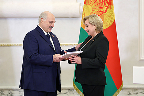 После принесения присяги Александр Лукашенко вручил судьям удостоверения и подарочные экземпляры Конституции Беларуси.