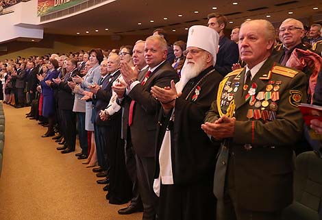 "Народа, который всегда жил в межнациональном и межконфессиональном согласии. Не просто сохранил самобытность, историю и культуру предков, но и сформировался как этнос, - сказал глава государства. - Куда бы ни тянулись наши родовые корни, какую бы веру ни исповедовали, мы - дети белорусской земли. Мы можем по-разному оценивать опыт прошлого, но определенно смотрим в одном направлении, вместе создавая свое будущее".