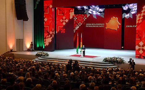 "Мы подняли экономику после перестроечного упадка, прошли испытания мировыми кризисами, закалились и убедились в правильном выборе главных принципов белорусского государства - честности, справедливости, равенства прав и возможностей. Наша история еще раз подтвердила, что победители бывшими не бывают. Надо только помнить об этом и верить в себя. Наша независимость - прежде всего в сознании каждого", - подчеркнул белорусский лидер.