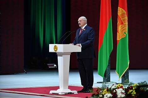 Глава государства обратил внимание, что Беларусь за четверть века коренным образом изменила свое положение в мире: "Сегодня наш голос уверенно звучит на международных площадках, наша страна стала проводником безопасности и стабильности в центре Европы".