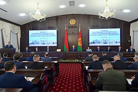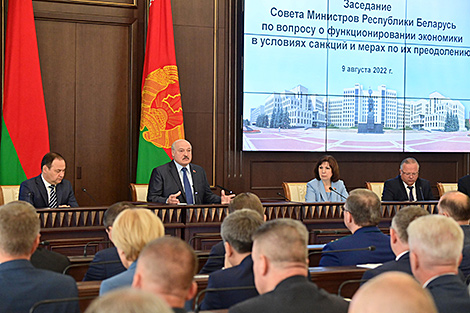 9 августа, Минск /Корр. БЕЛТА/. Президент Беларуси Александр Лукашенко провел заседание Совета Министров о функционировании экономики в условиях санкций и мерах по их преодолению. В течение нескольких часов были заслушаны доклады не только премьер-министра Романа Головченко, но и руководителей отраслей - сельского хозяйства, промышленности, транспорта, строительства, калийной отрасли, банковско-финансовой сферы. Все основные тенденции изучены на основе данных статистики, а по итогам разговора Александр Лукашенко дал конкретные поручения по ряду направлений, передает корреспондент БЕЛТА.