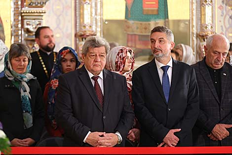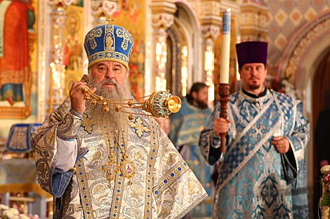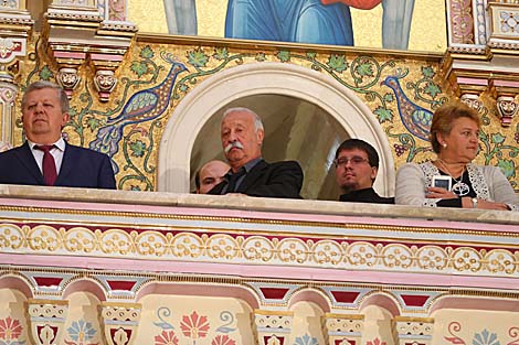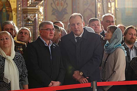 Святейший Патриарх возглавил чин Великого освящения в сослужении Митрополита Минского и Заславского Павла, Патриаршего Экзарха всея Беларуси, архипастырей Белорусской православной церкви, некоторых членов Синода Русской православной церкви и настоятелей храмов Минска.