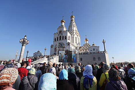 "Храм не должен быть только мемориальным местом, он должен быть местом духовной жизни христианской общины местного прихода. Я хотел бы выразить благодарность Президенту Беларуси Александру Лукашенко за его огромную поддержку в строительстве и благоукрашении этого святого храма. Без этой поддержки его нельзя было бы воздвигнуть и сделать таким прекрасным, монументальным, являющим собой памятник, посвященный героям, боровшимся за свободу нашего Отечества", - добавил Патриарх Кирилл. В память о пребывании в храме и совершении Божественной литургии он передал икону Владимирской Божией Матери.