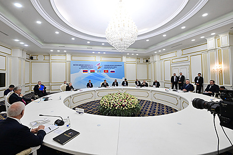 Весьма показательно, что Александр Лукашенко решил на заседании в расширенном составе озвучить подготовленные тезисы выступления для узкого. А ведь последнее всегда, как правило, гораздо острее и предметнее, в то время как расширенный формат более общий. На первой части переговоров эти тезисы не озвучивались - лидеры стран большей частью вели дискуссию, - и глава белорусского государства в присущем ему стиле решил говорить исключительно по существу. И начал с темы санкций.