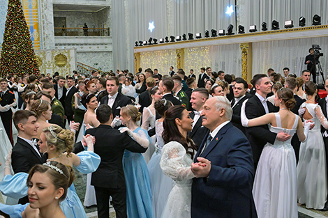 Александр Лукашенко 24 декабря принял участие в новогоднем балу для молодежи во Дворце Независимости.