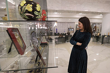 Интерес у гостей Дворца Независимости вызывает и Музей подарков. Там хранится все, что Президенту подарили лидеры других стран, зарубежные делегации, белорусские мастера и общественные деятели. В Музее подарков собрано много памятных предметов. Один из них Президенту вручили во время празднования тысячелетия Бреста. Неофициальный символ Беларуси - васильки - сделаны из серебра и камня. Их "вырастил" художник-ювелир Николай Кузьмич, автор возрожденного Креста Евфросинии Полоцкой.