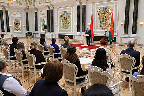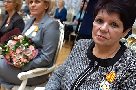 "Работала, прихожу, мне звонят: товарищ Добровольская Светлана Николаевна, надо ехать, будет вам вручать награду Президент Беларуси. Я говорю: вы что? Я удивилась. Ну, знаете, огорошили меня так. Я думала, так девчонки балуются и говорят мне по телефону", - рассказала Светлана Добровольская, а потом добавила, что, когда реально увидела Президента, то даже сердце замерло в груди: "Открываются двери: "Президент Республики Беларусь Александр Григорьевич Лукашенко!" Ой, слушайте, сердце замерло в груди".