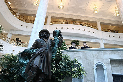 Усердно над архитектурной жемчужиной трудились не только строители, но и художники и скульпторы. Например, в Зимнем саду есть композиции Немана и Припяти высотой чуть более 2 м. Мало кто знает, что выглядеть здесь все должно было по-другому.