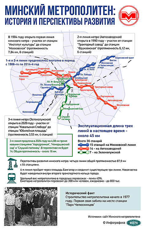 Строительство первого участка Минского метрополитена - от станции "Институт культуры" до "Московской" - длилось семь лет. 29 июня 1984 года состоялось его торжественное открытие. Скоро стало понятно: ветку необходимо продлевать. От "Московской" до "Востока". Затем принялись за строительство Автозаводской линии. На открытии станции "Могилевская" в 2001 году присутствовал Александр Лукашенко.
