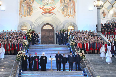 Митрополит Минский и Заславский Павел, Патриарший Экзарх всея Беларуси произнесет краткое духовное слово - благословение Беларуси и ее народа. Затем перед участниками церемонии выступит глава государства. Рядом с ним будут находиться руководители четырех конфессий: Митрополит Павел, Митрополит Минско-Могилевской архиепархии Римско-Католической церкви в Беларуси Архиепископ Тадеуш Кондрусевич, председатель Мусульманского религиозного объединения в Беларуси Муфтий Абу-Бекир Шабанович и председатель Иудейского религиозного объединения в Беларуси Григорий Хайтович.