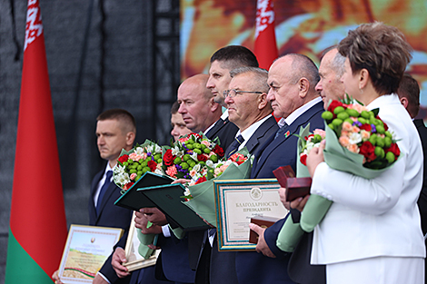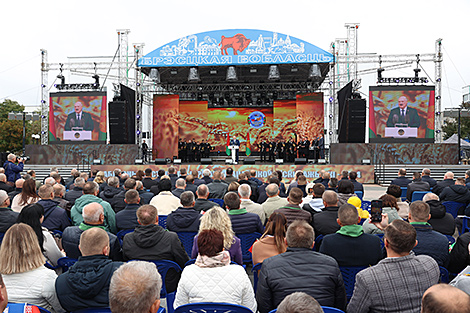 "Было очень тяжело. Тогда активно, не глядя ни на что, вы помогали мне, совсем еще зеленому Президенту. И ваши поддержка и вера всегда меня вдохновляли. И мы не согнулись, мы выстояли, - подчеркнул глава государства. - Как бы пафосно это ни звучало, именно крестьянин тогда спас страну. И во славу человека труда мы провели первые "Дажынкі". Фестиваль стал гимном труженикам села, тяжелому и благородному крестьянскому труду. Неудивительно, что наши "Дажынкі" за эти годы превратились в праздник всей страны. Истинно народный праздник".