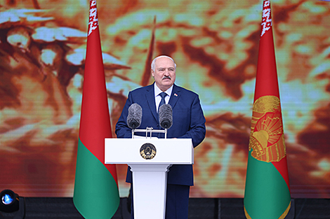 "Вы не хуже, чем я, а многие лучше, чем я, чувствуете и понимаете, что лучше работать на родной мирной земле. Нам нужен мир. Нам больше ничего не надо. Все остальное мы сделаем, как всегда было, своими руками. Но нам надо выстоять, чтобы в очередной раз наша Беларусь не стала полем битвы сильных мира сего. На это мы будем нацелены. Этого вы хотите, еще больше этого хочу я", - заявил белорусский лидер.
