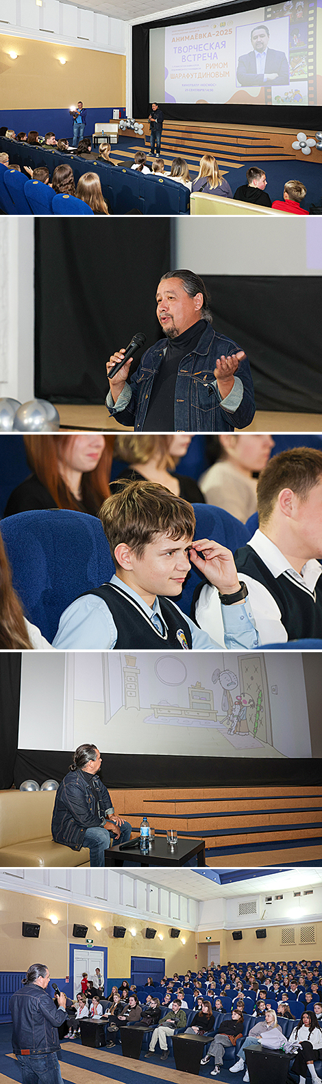 Творческая встреча с российским режиссером-аниматором, художником-постановщиком, заслуженным работником культуры Башкортостана Римом Шарафутдиновым состоялась 25 сентября в рамках XXVIII Международного фестиваля анимационных фильмов "Анимаевка-2025" в кинотеатре "Космос" в Могилеве.